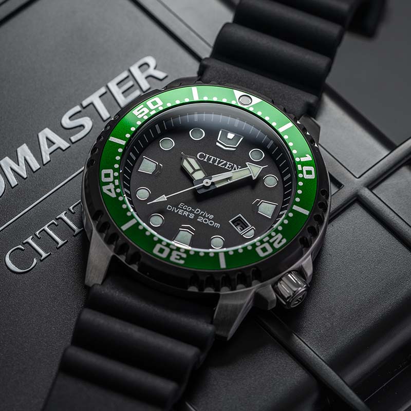 The Aquascaphe Bronze debuted in 2020, and is now available with dial colorways in brown, dark blue, and black. It features a 39mm case made from an aluminum-copper alloy (rather than the tin-copper alloy more commonly used for watch cases. This material makes the case, including the divers’ bezel made of the same material, more corrosion-resistant and thus slower to develop patina. The dial layout is a little different than the steel Classic models, with Arabic numerals at 3, 6, 9, and 12, and bronze-colored hands that pop nicely against the background of each dial. The dials’ tones are echoed in the sport-rubber straps that help make the Aquascaphe such a reliable diving companion. The Miyota 9309 beats inside the case, which, like all cases made of bronze, will eventually patina to tell the wearer’s unique story.