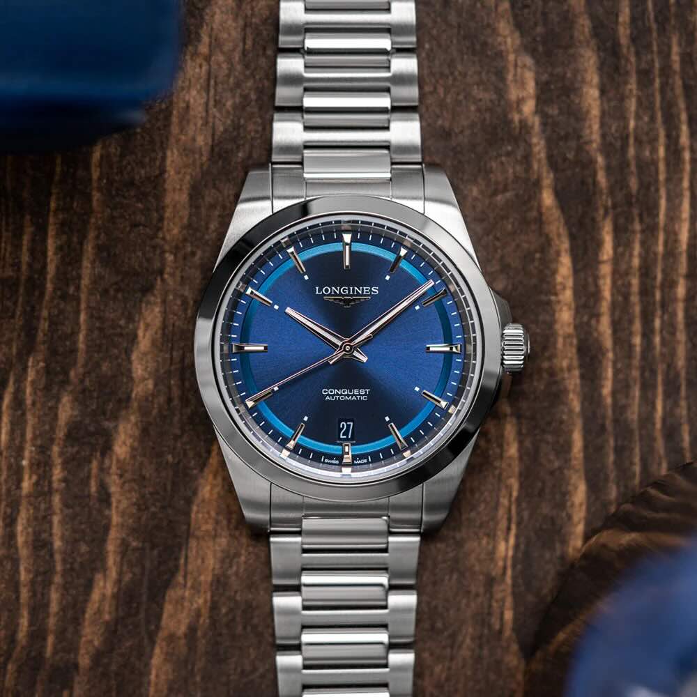 Behind the enclosed steel caseback is the Longines L888.4 movement, which is a no-date, modified version of the ETA A31.L11. The L888.4 operates at 3.5 Hz and has a 72- hour power reserve, which is pretty solid. It’s also COSC-certified, with an accuracy of -4/+6 seconds per day. Finally, there are hacking seconds and manual winding here, which makes for a really excellent package — especially when you consider the price.
