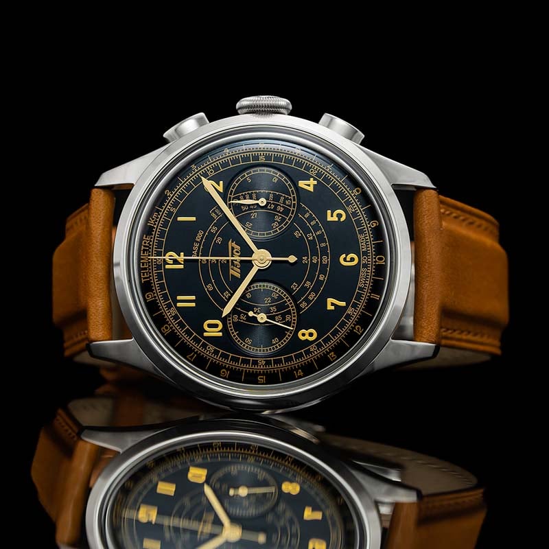 While Hamilton is known best in military circles for providing field watches for American troops during the World Wars, the brand also manufactured timepieces for British Royal Air Force (RAF) pilots in the 1970s. Those watches serve as the template for the recently launched Khaki Aviation Pioneer Mechanical Chrono, which sports a black dial with two parallel subdial counters for elapsed minutes and running seconds as well as period-accurate central hands with a white lacquer finish reminiscent of that on the original RAF models. The beige tone of the hour numerals and other markings echoes the look of aged radium luminous substance that would have been used on the watch’s vintage predecessors. Hamilton has equipped the watch with a manually winding movement, the H-51-Si, which is noteworthy for its antimagnetic silicon balance spring.