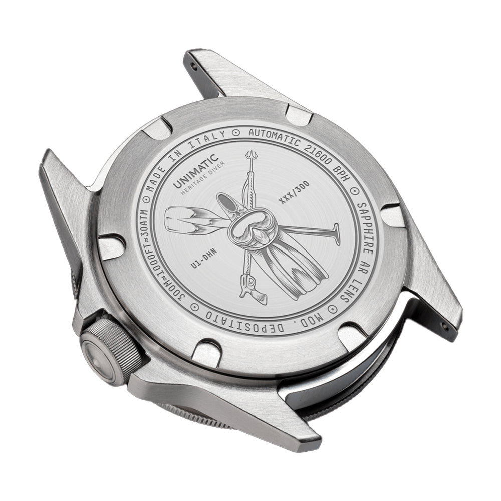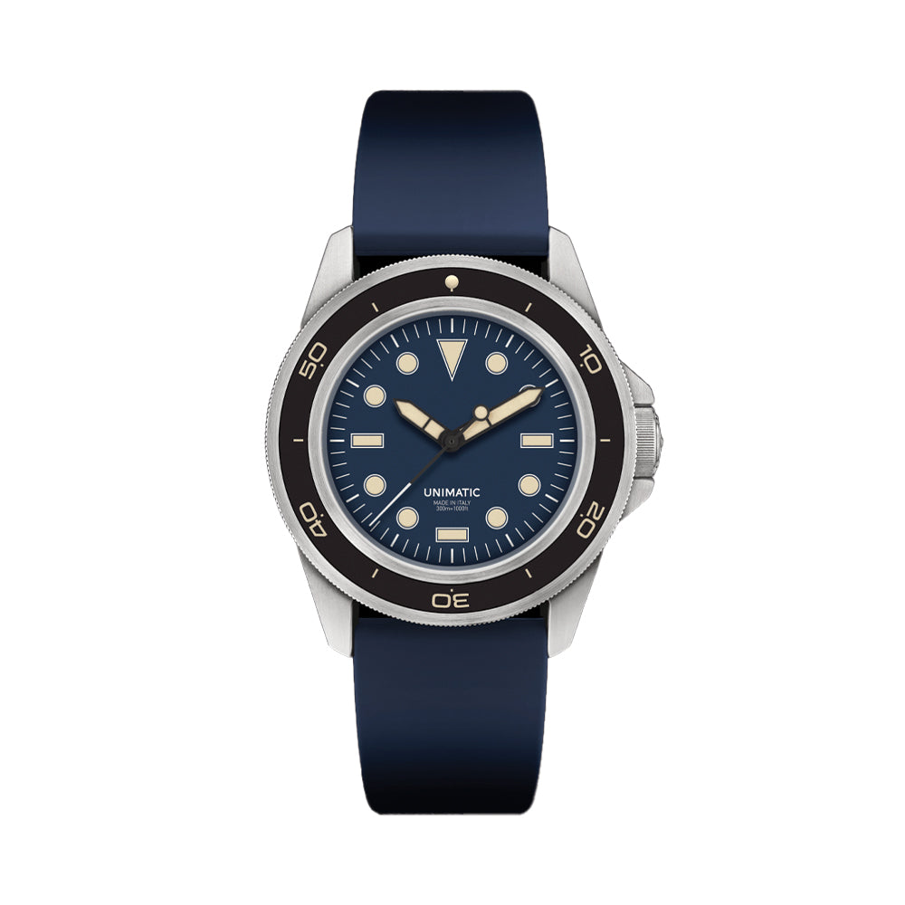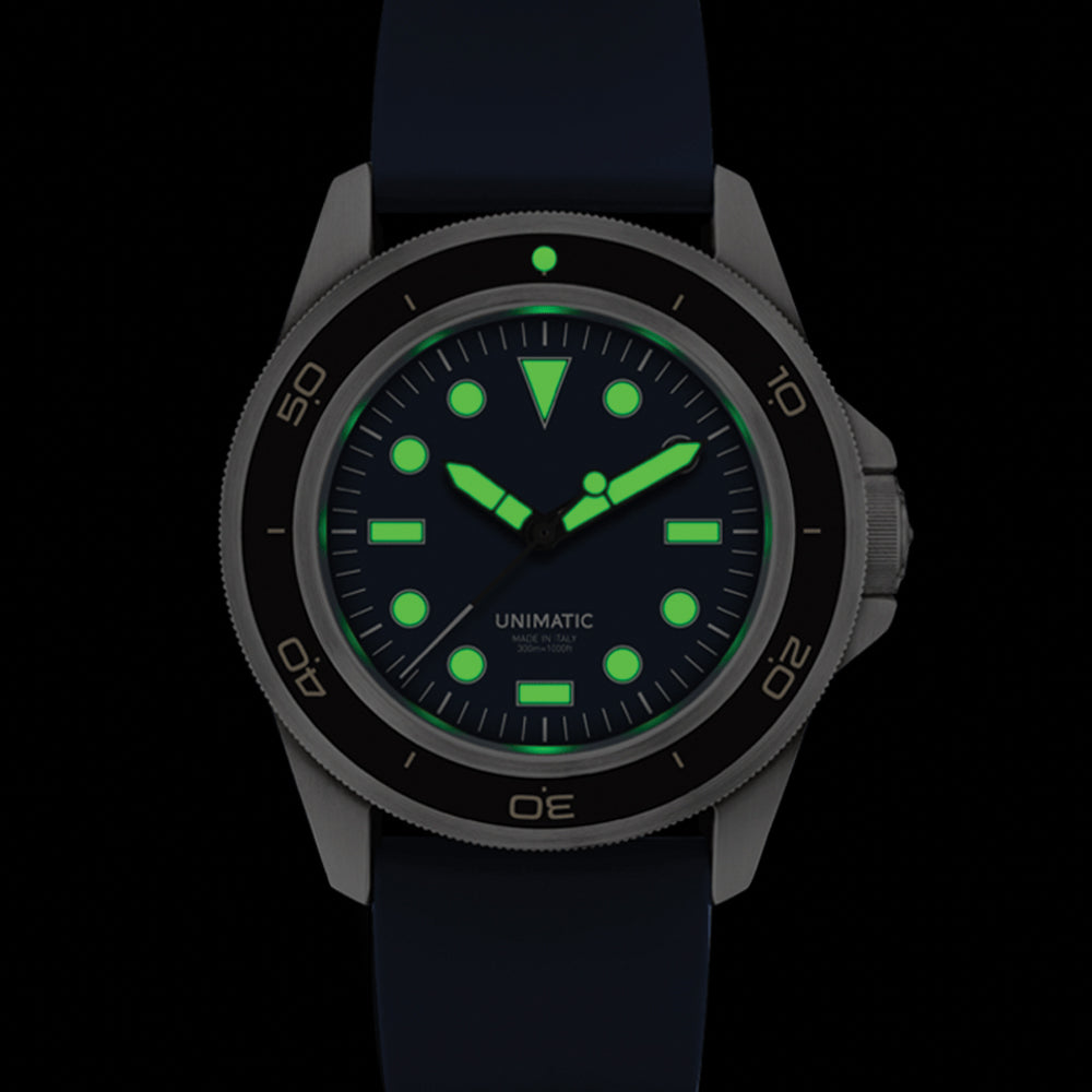 Unimatic, founded in 2015 by Giovanni Moro and Simone Nunziato, operates as a continuous watchmaking research lab offering unique, Italian-made watches that blend excellent design, iconic elements, and cutting-edge technical solutions. Their first product, the Modello Uno, was followed by a field watch and a chrono-diver, all water-resistant to 300 meters. Each watch is individually engraved with a serial number and total production quantity, ensuring uniqueness.