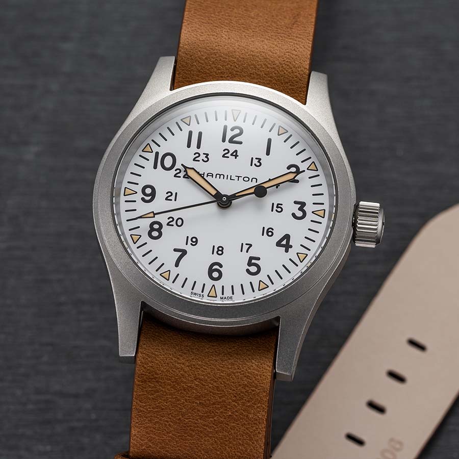 For under $500, the Hamilton Khaki Field Mechanical is perhaps the best Swiss mechanical watch on the market, full stop. It contains a modified Swiss ETA 2801 caliber that Hamilton calls the H-50, which drops the beat frequency from the standard 28,000 VPH to 21,600 VPH to stretch the power reserve out to an impressive 80 hours. And the longer power reserve here is especially impactful with this being a hand-wound watch. Beyond the movement, the Khaki Field Mechanical leans into Hamilton’s impressive history of supplying field watches to the U.S. and other Allied military organizations in World War II, with this basic dial design dating back decades. In the modern world, the Khaki Field Mechanical (you can learn more about it here) is an impressive value with a lot to offer for both military missions as well as life’s everyday operations.