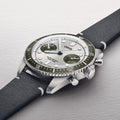 Unidirectional rotating bezel with dark green aluminium insert and minutes scale
