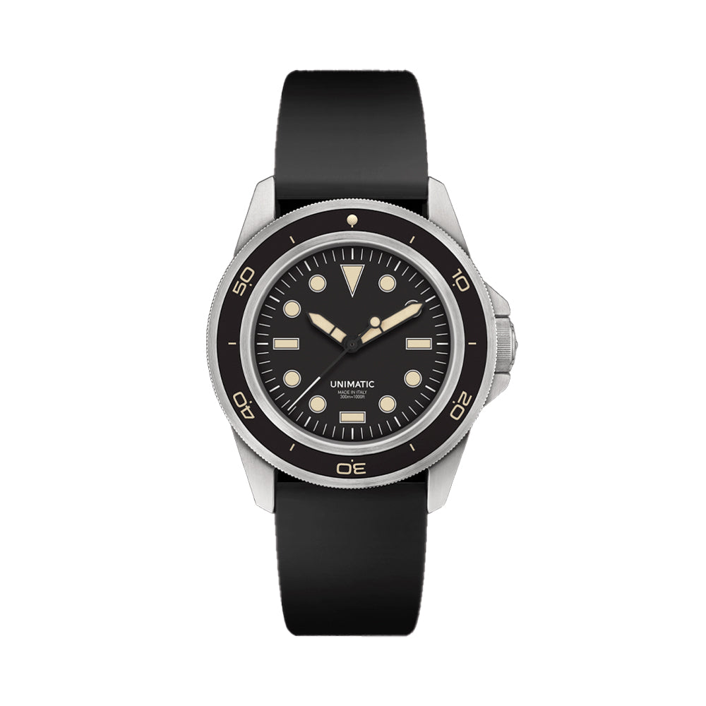 Unimatic, founded in 2015 by Giovanni Moro and Simone Nunziato, operates as a continuous watchmaking research lab offering unique, Italian-made watches that blend excellent design, iconic elements, and cutting-edge technical solutions. Their first product, the Modello Uno, was followed by a field watch and a chrono-diver, all water-resistant to 300 meters. Each watch is individually engraved with a serial number and total production quantity, ensuring uniqueness.