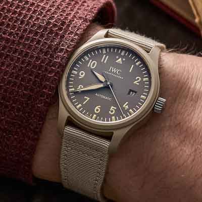 The surfaces, as one might expect of a watch originally intended for military pilots, are predominantly satin-brushed for an overall matte appearance, while polished accents on the bezel’s top edge and lug bevels serve as a subtle nod to modern luxury. The case lugs are equipped with IWC's EasX quick-change system, which enables the strap to be swapped not only for another strap (rubber for leather, for example) but also, for the first time in the brand's Pilot’s collection, an all-new steel link bracelet. (The bracelet, of course, adds several grams to the overall weight on the wrist, just in cast this is a concern.)