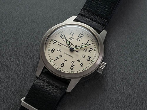 Hamiltons are great watches with a vintage look. The Murph, though made for the movie Interstellar, looks more like the watches Hamilton made during WWII than do the other field watches. The cathedral hands, the minutes outside the hours. All that’s missing (basically) is the railroad track. Great stuff here!