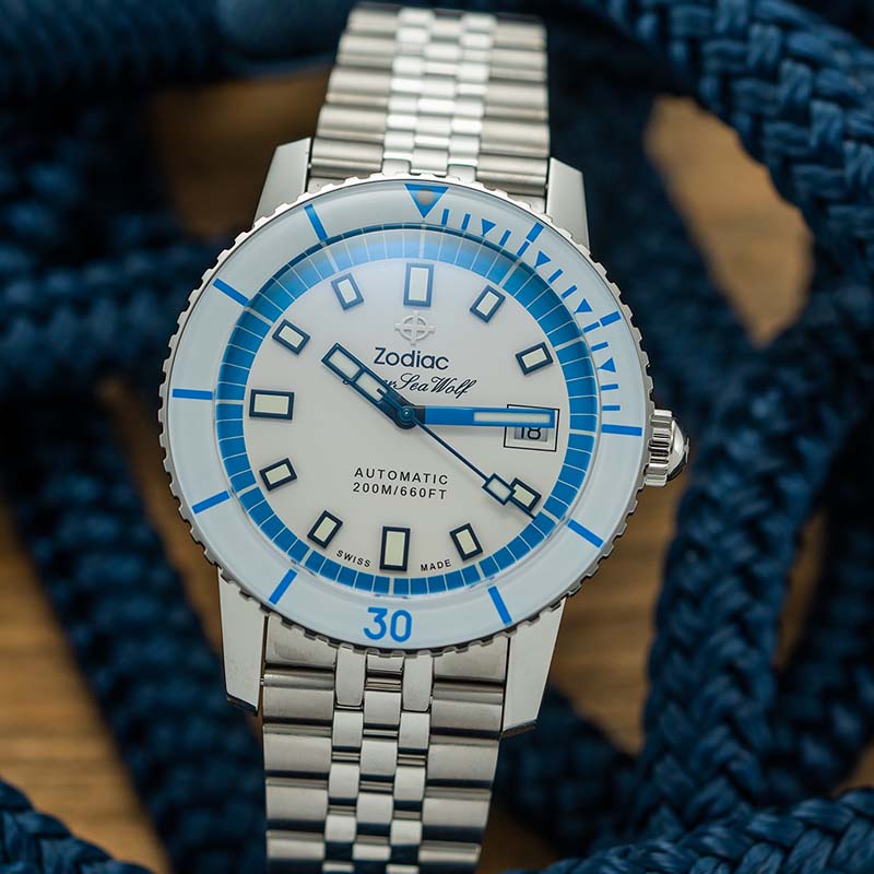 Described in more detail directly above, the most recent version of the Breitling Superocean Automatic (there’s no chronograph version as yet) speaks to a wide swath of consumers with three case sizes and a variety of materials and material combinations, from all-steel, to steel and gold, to a special alloy of bronze that combines a high degree of corrosion resistance with a tendency to develop a unique patina over time. Beating inside all the cases is the automatic, Swiss-made Breitling Caliber 17, built on a reliable ETA or Sellita base, and mounted on either a three-row metal bracelet or rubber strap.