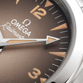 With the original Railmaster’s easy-to-read display, the dial of this model is beige with a black gradient, and features large numerals and hour markers in vintage Super-LumiNova. There is also a Small Seconds display placed at 6 o’clock, which includes a beige varnished hand.