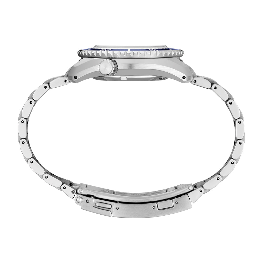 Blue ceramic uni-directional rotating elapsed timing bezel